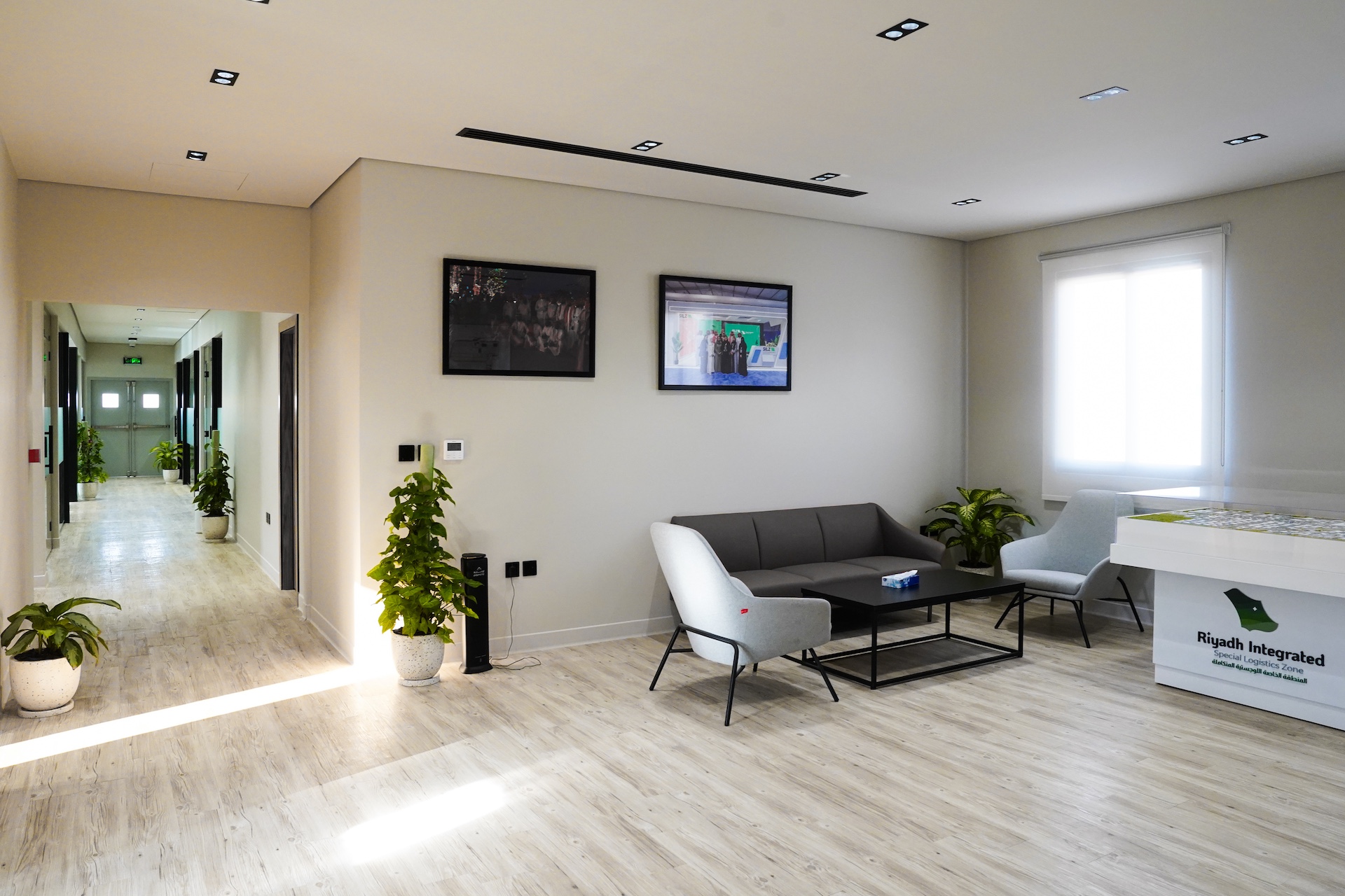 في زمن تنفيذ قياسي تم انشاء مجمع مرافق متكامل لصالح شركة المنطقة اللوجستية المتكاملة الخاصة بمطار الملك خالد الدولي بمدينة الرياض ويحتوي على المجمع على مكاتب غرف اجتماعات وصالات ضيافة ومرافق خدمات متعددة كما تمت تهيئة مواقف السيارات بسفلتة ورصف كامل المجمع وتركيب مظلات خارجية.